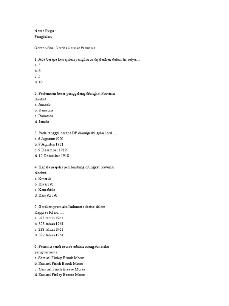 Soal pramuka sering digunakan dalam kegiatan lomba pramuka, misalnya lomba cerdas cermat di bidang kepramukaan contoh soal sandi pramuka. Soal soal morse smotret onlajn na hah life.